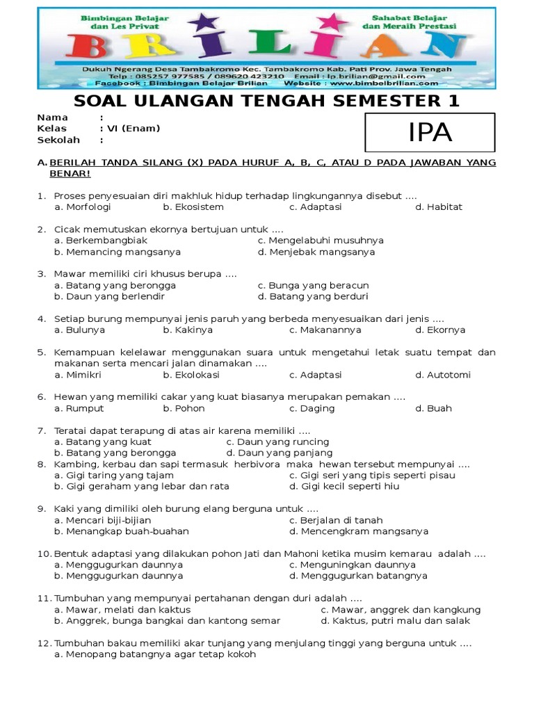 Kumpulan soal usbn sd ipa 2019 tentang penyesuaian diri. Semua makhluk hidup yang ada di bumi, melakukan hubungan dengan sesama makhluk hidup maupun dengan lingkungannya. Jelaskan apa yang dimaksud dengan komponen abiotik dan sebutkan 4 contohnya! Selanjutnya, berikut ini soal adaptasi (penyesuaian diri) makhluk hidup. Penyesuaian diri makhluk hidup terhadap lingkungan dinamakan…. Penyesuaian diri makhluk hidup terhadap lingkungan disebut. Tujuan umum dari penyesuaian diri makhluk hidup yaitu. Terdapat 5 ruang lingkup materi. Penyampaian materi yang kurang tepat menjadi. Pohon jati dan teratai b. Siswa kelas v yang remidi silahkan kerjakan lagi untuk nambah nilai. Savesave soal penyesuaian makhluk hidup for later. Sejauh ini ada beberapa metode pengelompokan, yaitu 2,3,4,5,6 klasifikasi makhluk hidup merupakan suatu kegiatan untuk mengelompokan makhluk hidup menjadi golongan atau unit yang lebih kecil.